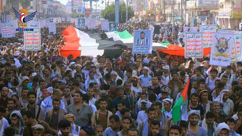 حشود جماهيرية كبرى في الحديدة بمسيرات "ثابتون مع غزة.. وسنتصدى لأمريكا ومن تورط معها"