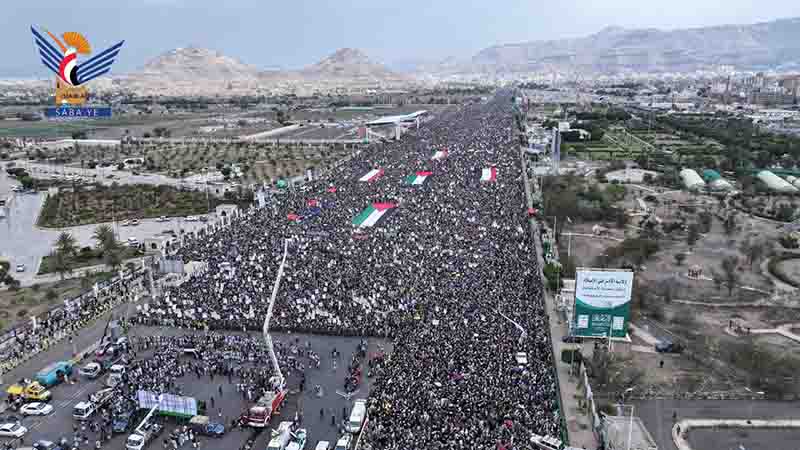 حشود ملايينية بالعاصمة صنعاء تعلن تأييد خيارات قائد الثورة لنصرة غزة ومواجهة التصعيد السعودي الأمريكي