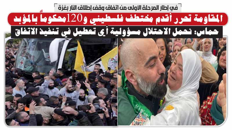 في إطار المرحلة الأولى من اتفاق وقف إطلاق النار بغزة.. المقاومة تحرر أقدم مختطف فلسطيني و120محكوماً بالمؤبد