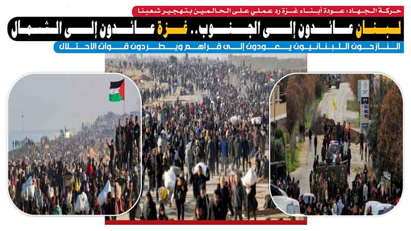 حركة الجهاد: عودة أبناء غزة رد عملي على الحالمين بتهجير شعبنا.. لبنان عائدون إلى الجنوب.. غزة عائدون إلى الشمال