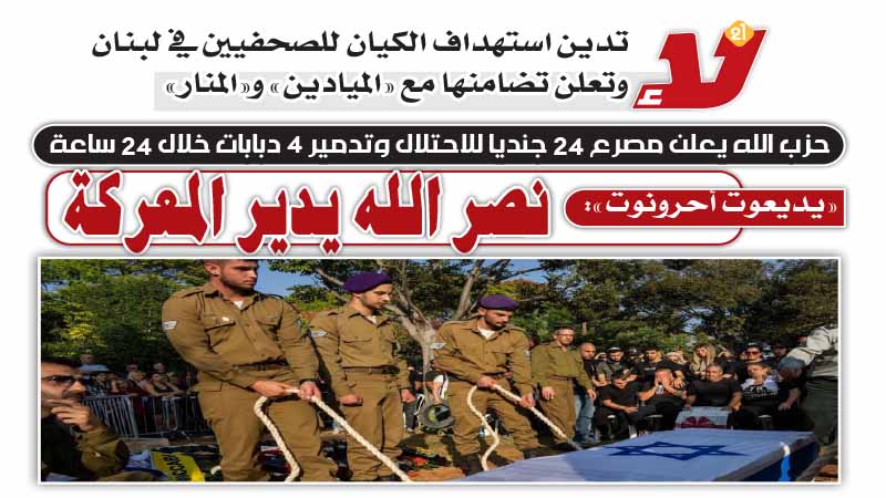 «لا» تدين استهداف الكيان للصحفيين في لبنان وتعلن تضامنها مع «الميادين» و«المنار».. «يديعوت أحرونوت»:نصر الله يدير المعركة