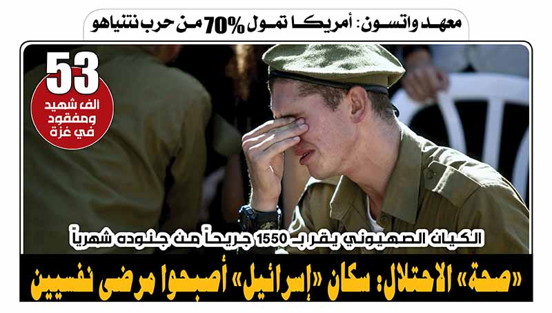 الكيان الصهيوني يقر بـ 1550 جريحاً من جنوده شهرياً.. «صحة» الاحتلال: سكان «إسرائيل» أصبحوا مرضى نفسيين