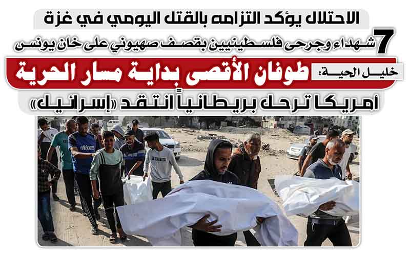 7 شهداء وجرحى فلسطينيين بقصف صهيوني على خان يونس.. خليل الحية:طوفان الأقصى بدايـة مسار الحرية
