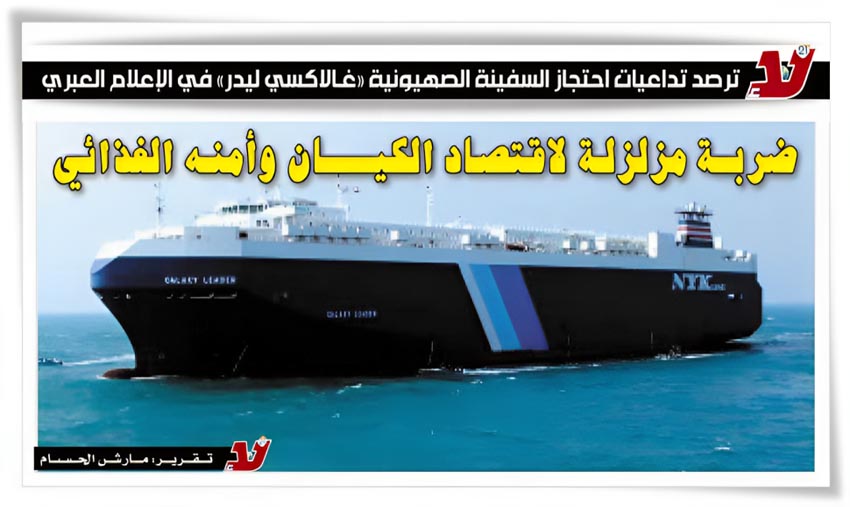 رصد تداعيات احتجاز السفينة الصهيونية «غالاكسي ليدر» في الإعلام العبري.. ضربة مزلزلة لاقتصاد الكيان وأمنه الغذائي