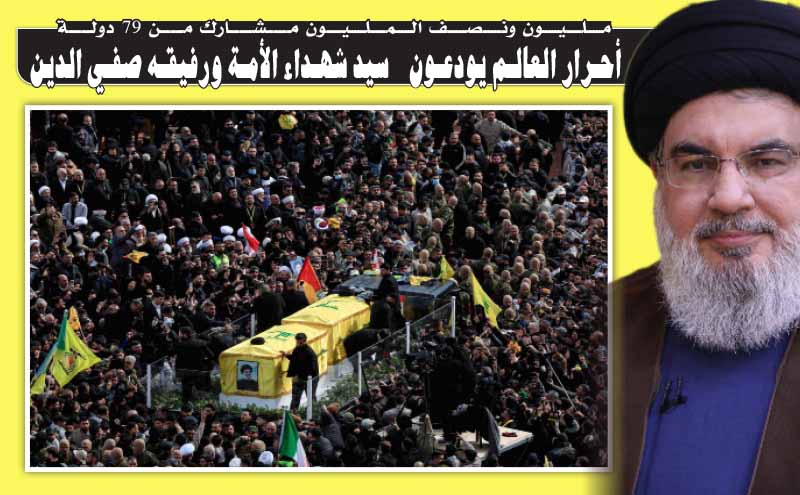 مليون ونصف المليون مشارك من 79 دولة.. أحرار العالم يودعون سيد شهداء الأمة ورفيقه صفي الدين