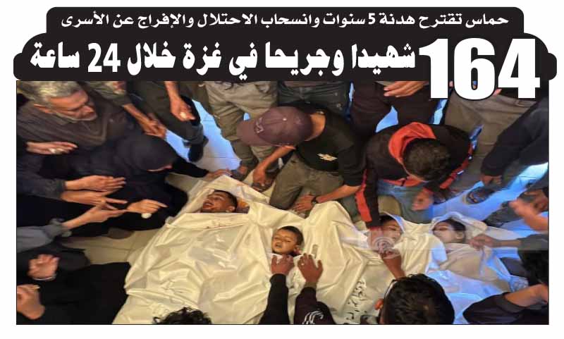 حماس تقترح هدنة 5 سنوات وانسحاب الاحتلال والإفراج عن الأسرى.. 164 شهيدا وجريحا في غزة خلال 24 ساعة