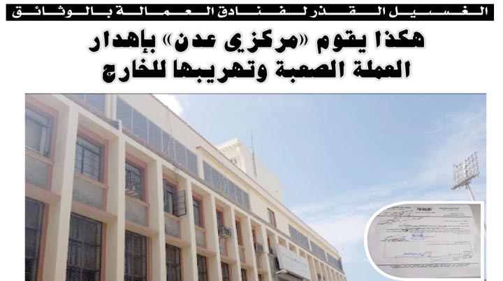 يواصل بنك الارتزاق في مدينة عدن المحتلة تدمير ما تبقى من الاقتصاد عبر استنزاف العملة الصعبة وتهريبها. .