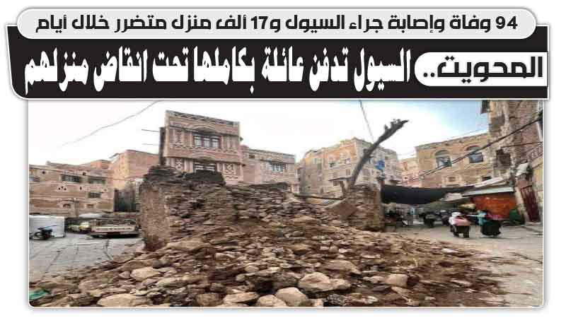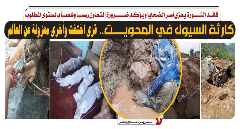قائد الثورة يعزي أسر الضحايا ويؤكد ضرورة التعاون رسمياً وشعبياً بالمستوى المطلوب.. كارثة السيول في المحويت.. قرى اختفت وأخرى معزولة عن العالم