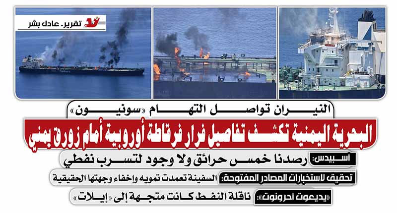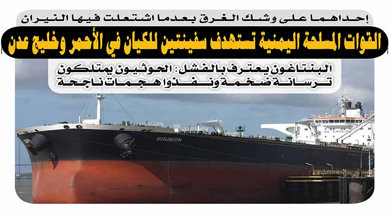 النيران تواصل التهام «سونيون» .. البحرية اليمنية تكشف تفاصيل فرار فرقاطة أوروبية أمام زورق يمني