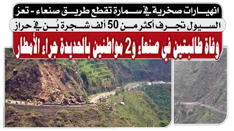 السيول تجرف أكثر من 50 ألف شجرة بُن في حراز.. وفاة طالبتين في صنعاء و2 مواطنين بالحديدة جراء الأمطار