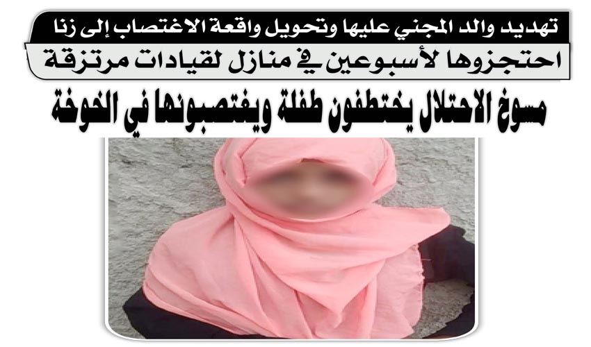 تقرير / لا ميديا - أقدم عدد من مسوخ الاحتلال في الساحل الغربي، على اختطاف واغتصاب طفلة واحتجازها لع. .