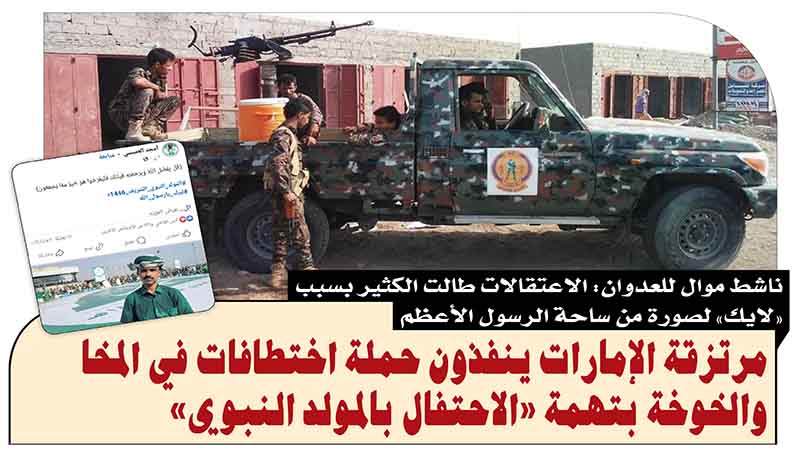 مرتزقة الإمارات ينفذون حملة اختطافات في المخا والخوخة بتهمة «الاحتفال بالمولد النبوي»