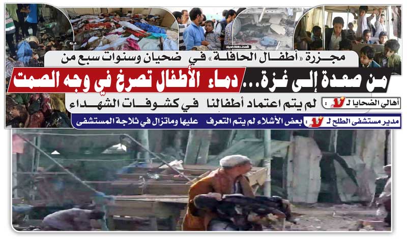 مجزرة «أطفال الحافلة» فـي ضحيان وسنوات سبع من الخذلان .. من صعدة إلى غزة... دماء الأطفال تصرخ في وجه الصمت