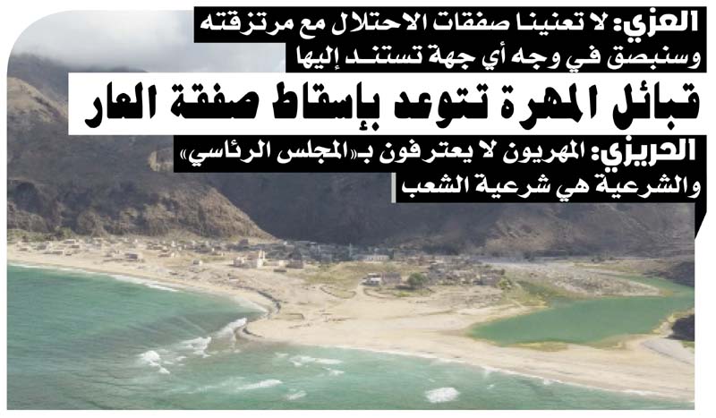 قبائل المهرة تتوعد بإسقاط صفقة العار.. الحريزي: لا نعترف بـ«المجلس الرئاسي» والشرعية هي شرعية الشعب