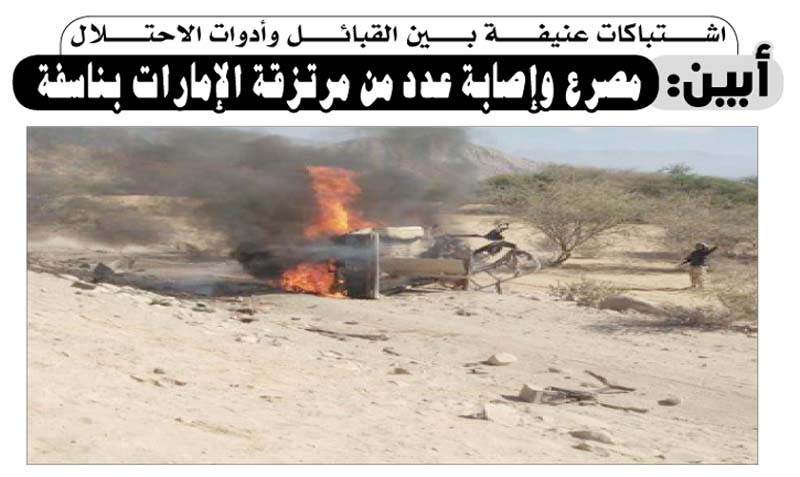 اشتباكات عنيفة بين القبائل وأدوات الاحتلال... أبين: مصرع وإصابة عدد من مرتزقة الإمارات بناسفة