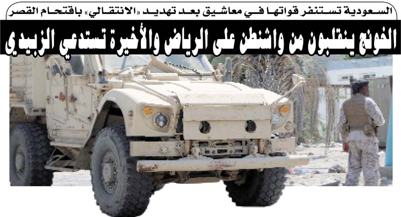 السعودية تستنفر قواتها فـي معاشيق بعد تهديد «الانتقالي» باقتحام القصر.. الخونج ينقلبون من واشنطن على الرياض والأخيرة تستدعي الزبيدي