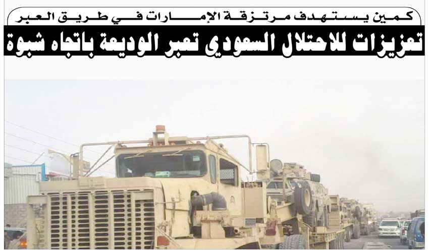 كمين يستهدف مرتزقة الإمارات فـي طريق العبر.. تعزيزات للاحتلال السعودي تعبر الوديعة باتجاه شبوة