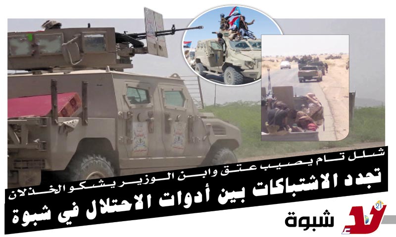 شلل تام يصيب عتق وابن الوزير يشكو الخذلان.. تجدد الاشتباكات بين أدوات الاحتلال في شبوة