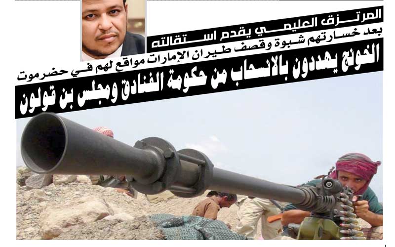 بعد خسارتهم شبوة وقصف طيران الإمارات مواقع لهم فـي حضرموت.. الخونج يهددون بالانسحاب من حكومة الفنادق ومجلس بن قولون