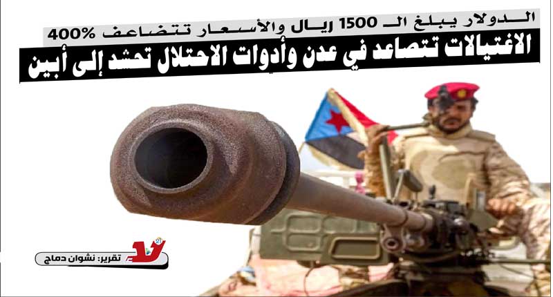 الدولار يبلغ الـ 1500 ريال والأسعار تتضاعف 400٪ .. الاغتيالات تتصاعد في عدن وأدوات الاحتلال تحشد إلى أبين