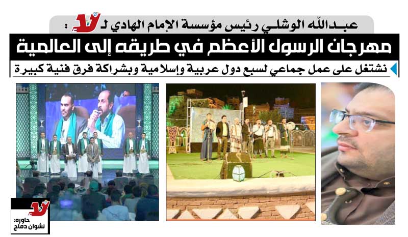 عبدالله الوشلي رئيس مؤسسة الإمام الهادي لـ «صحيفة لا»:مهرجان الرسول الأعظم في طريقه إلى العالمية