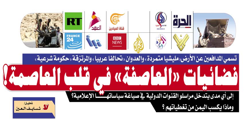 تسمي المدافعين عن الأرض«مليشيا متمردة» والعدوان «تحالفا عربيا» والمرتزقة «حكومة شرعية».. فضائيات «العاصفة» في قلب العاصمة!