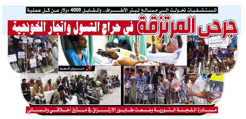 المستشفيات تحولت إلى مسالخ لبتر الأطراف.. والمقابل 4000 دولار عن كل عملية .. جرحى المرتزقة في حراج التسول واتجار الخونجية
