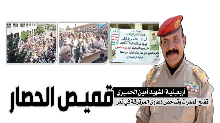 أربعينيـة الشهيد أمين الحميري تفتح الممرات وتدحض دعاوى المرتزقة في تعز..قميـص الحصار