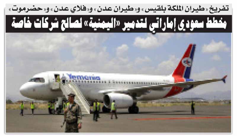 تفريخ «طيران الملكة بلقيس» و«طيران عدن» و«فلاي عدن» و«حضرموت».. مخطط سعودي إماراتي لتدمير «اليمنية» لصالح شركات خاصة