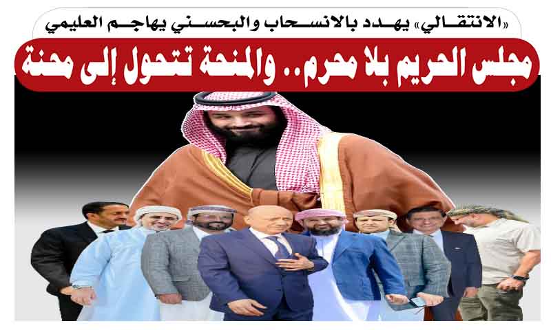 «الانتقالي» يهدد بالانسحاب والبحسني يهاجم العليمي.. مجلس الحريم بلا محرم.. والمنحة تتحول إلى محنة