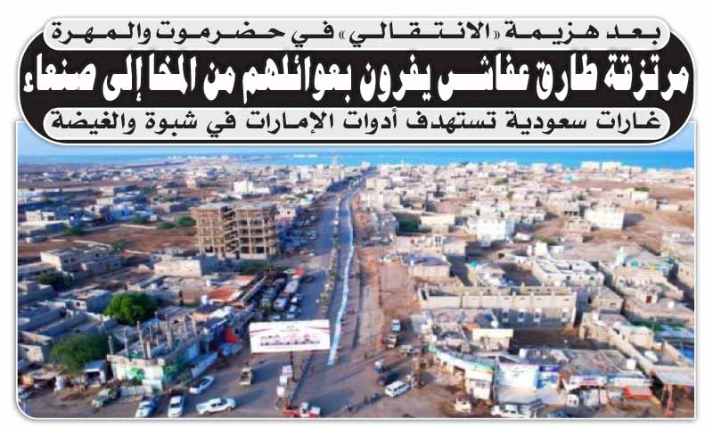 بعد هزيمة «الانتقالي» في حضرموت والمهرة .. مرتزقة طارق عفاش يفرون بعوائلهم من المخا إلى صنعاء