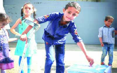 الـمــزيـدماجد المهدي ( 12 عاماً) رغم إصابته في قدمه، إلا أنه جمع ما في حصالته اليومية، وأصر على المشاركة في ح. .
