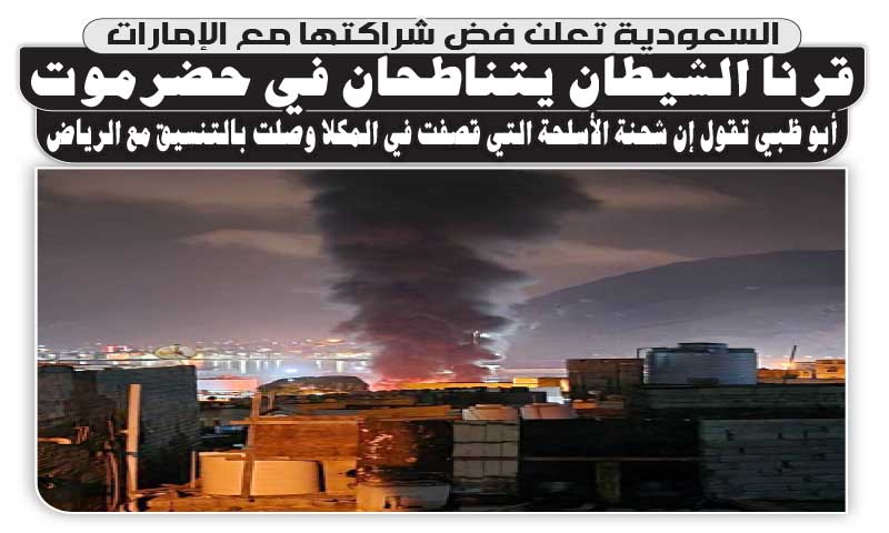 قرنا الشيطان يتناطحان في حضرموت.. أبو ظبي تقول إن شحنة الأسلحة التي قصفت في المكلا وصلت بالتنسيق مع الرياض