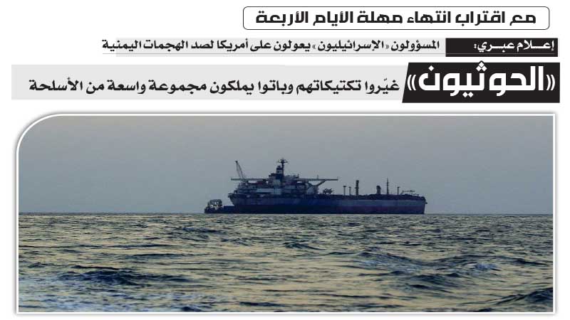 مع اقتراب انتهاء مهلة الأيام الأربعة .. إعلام عبري:المسؤولون «الإسرائيليون» يعولون على أمريكا لصد الهجمات اليمنية