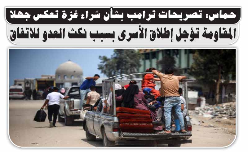 حماس: تصريحات ترامب بشأن شراء غزة تعكس جهلا.. المقاومة تؤجل إطلاق الأسرى بسبب نكث العدو للاتفاق