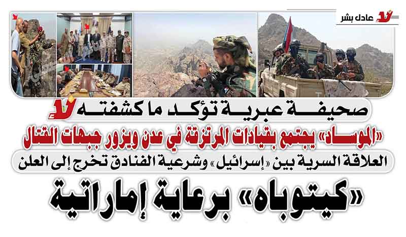 صحيفـة عبرية تؤكد ما كشفته «لا» .. «الموساد» يجتمع بقيادات المرتزقة في عدن ويزور جبهات القتال