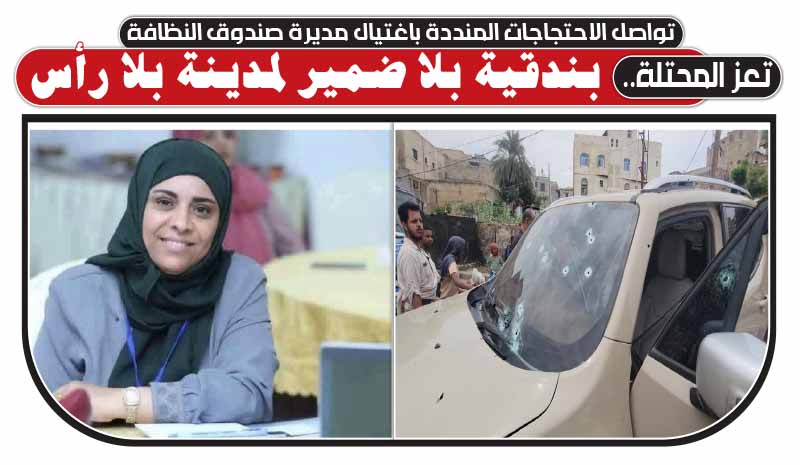 تواصل الاحتجاجات المنددة باغتيال مديرة صندوق النظافة.. تعز المحتلة..بندقية بلا ضمير لمدينة بلا رأس