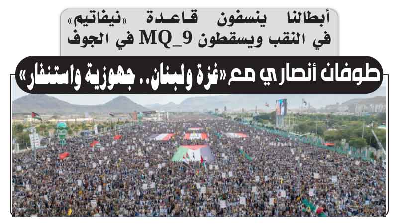 أبطالنا ينسفون قاعدة «نيفاتيم»في النقب ويسقطون MQ_9 في الجوف.. طوفان أنصاري مع «غزة ولبنان.. جهوزية واستنفار»