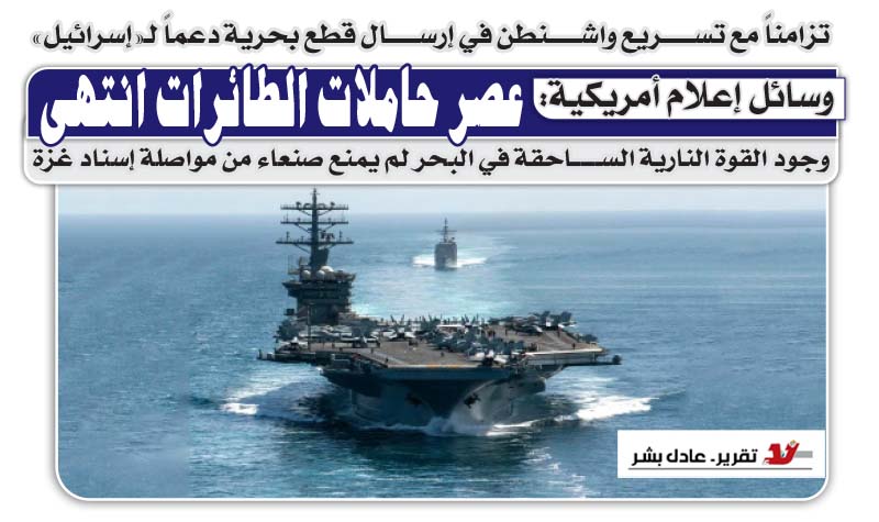 تزامناً مع تسريع واشنطن في إرسال قطع بحرية دعماً لـ«إسرائيل».. وسائل إعلام أمريكية:عصر حاملات الطائرات انتهى