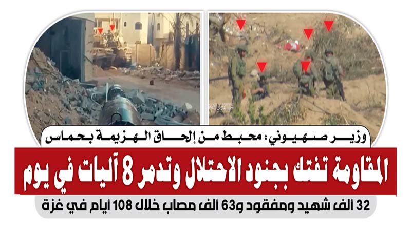 وزير صهيوني: محبط من إلحاق الهزيمة بحماس.. المقاومة تفتك بجنود الاحتلال وتدمر 8 آليات في يوم