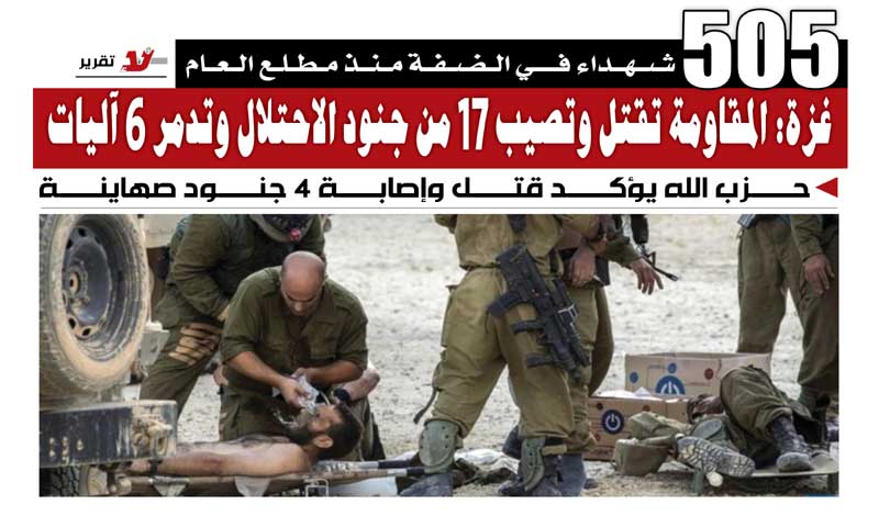 505 شهداء فـي الضفة منذ مطلع العام.. غزة: المقاومة تقتل وتصيب 17 من جنود الاحتلال وتدمر 6 آليات