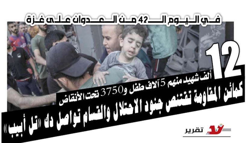 12 ألف شهيد منهم 5 آلاف طفل و3750 تحت الأنقاض.. كمائن المقاومة تقتنص جنود الاحتلال والقسام تواصل دك «تل أبيب»
