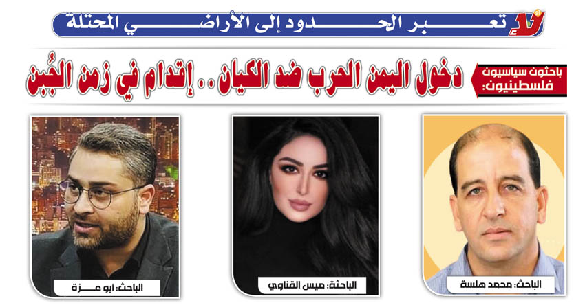 «لا» تعبر الحدود إلى الأراضي المحتلة.. باحثون سياسيون فلسطينيون:دخول اليمن الحرب ضد الكيان.. إقدام في زمن الجُبن