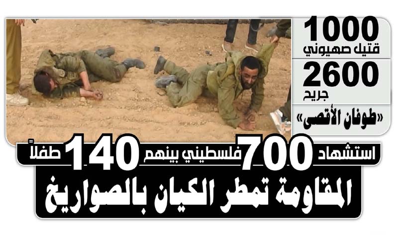 الـمــزيـدأعلن العدو الصهيوني بشكل رسمي ارتفاع عدد قتلاه إلى 1008 بينهم جنود وضباط، خلال المعارك في عملية طوفا. .