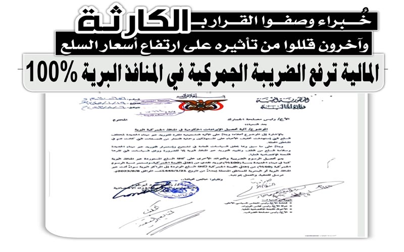 خُبراء وصفوا القرار بــ الكارثة.. المالية ترفع الضريبة الجمركية في المنافذ البرية 100%