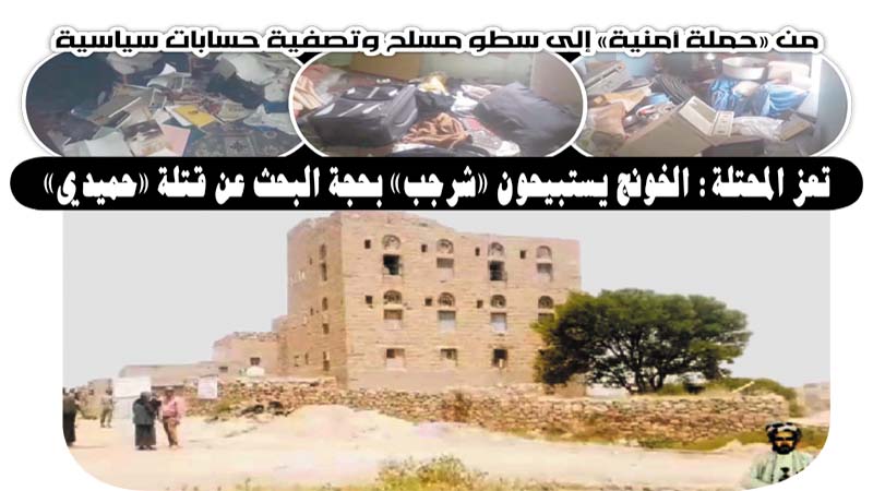 من «حملة أمنية» إلى سطو مسلح وتصفية حسابات سياسية.. تعز المحتلة: الخونج يستبيحون «شرجب» بحجة البحث عن قتلة «حميدي»