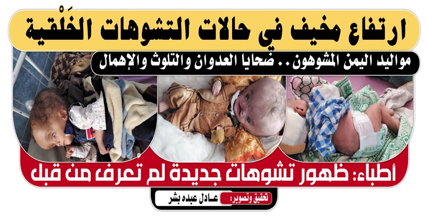 ارتفاع مخيف في حالات التشوهات الخَلْقية .. مواليد اليمن المشوهون.. ضحايا العدوان والتلوث والإهمال
