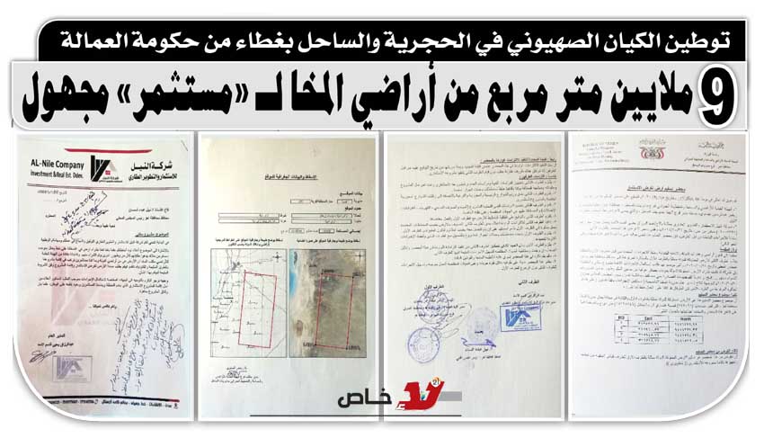 توطين الكيان الصهيوني في الحجرية والساحل بغطاء من حكومة العمالة.. 9 ملايين متر مربع من أراضي المخا لــ «مستثمر» مجهول