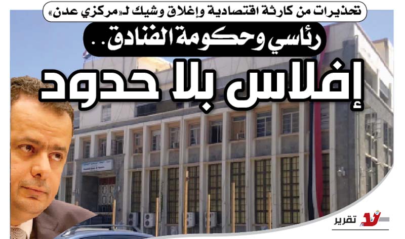 تحذيرات من كارثة اقتصادية وإغلاق وشيك لـ«مركزي عدن».. رئاسي وحكومة الفنادق.. إفلاس بلا حدود