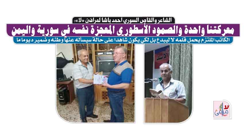 الشاعر والقاص السوري أحمد باشا لمرافئ «لا»: معركتنا واحدة والصمود الأسطوري المعجزة نفسه في سورية واليمن